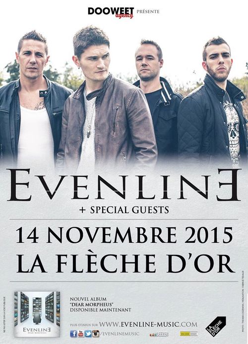 Après trois dates en Île de France complètes : en première partie de Seether, en première partie de GLAMOUR OF THE KILL et à La Péniche Antipode en avril prochain, nous sommes extrêmement fiers de vous annoncer que Evenline jouera pour la première fois à Paris dans une salle de 500 places le 14 Novembre prochain !