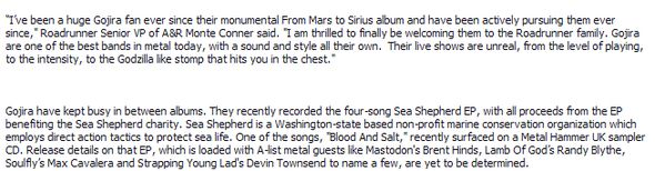 Gojira sortira son prochain album sur le prestigieux label Roadrunner qui annonce la signature des frenchies et qui récupère là un des plus gros vendeurs de la scène métal hexagonale.