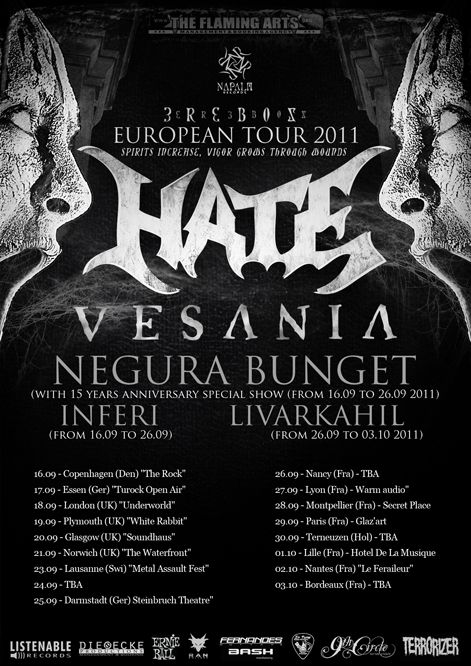 Listenable rec. confirme la tournée de Hate qui démarre à la rentrée prochaine.
