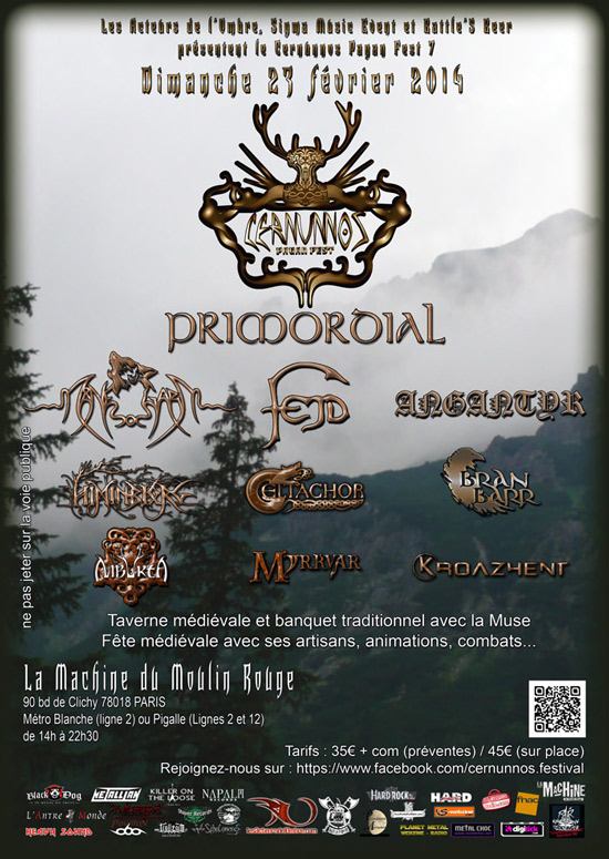 C’est avec un immense plaisir que Les Acteurs de l’Ombre, Battle’S Beer et Sigma Music Event vous invitent, le dimanche 23 février 2014, à la 7ème édition du CERNUNNOS PAGAN FEST.